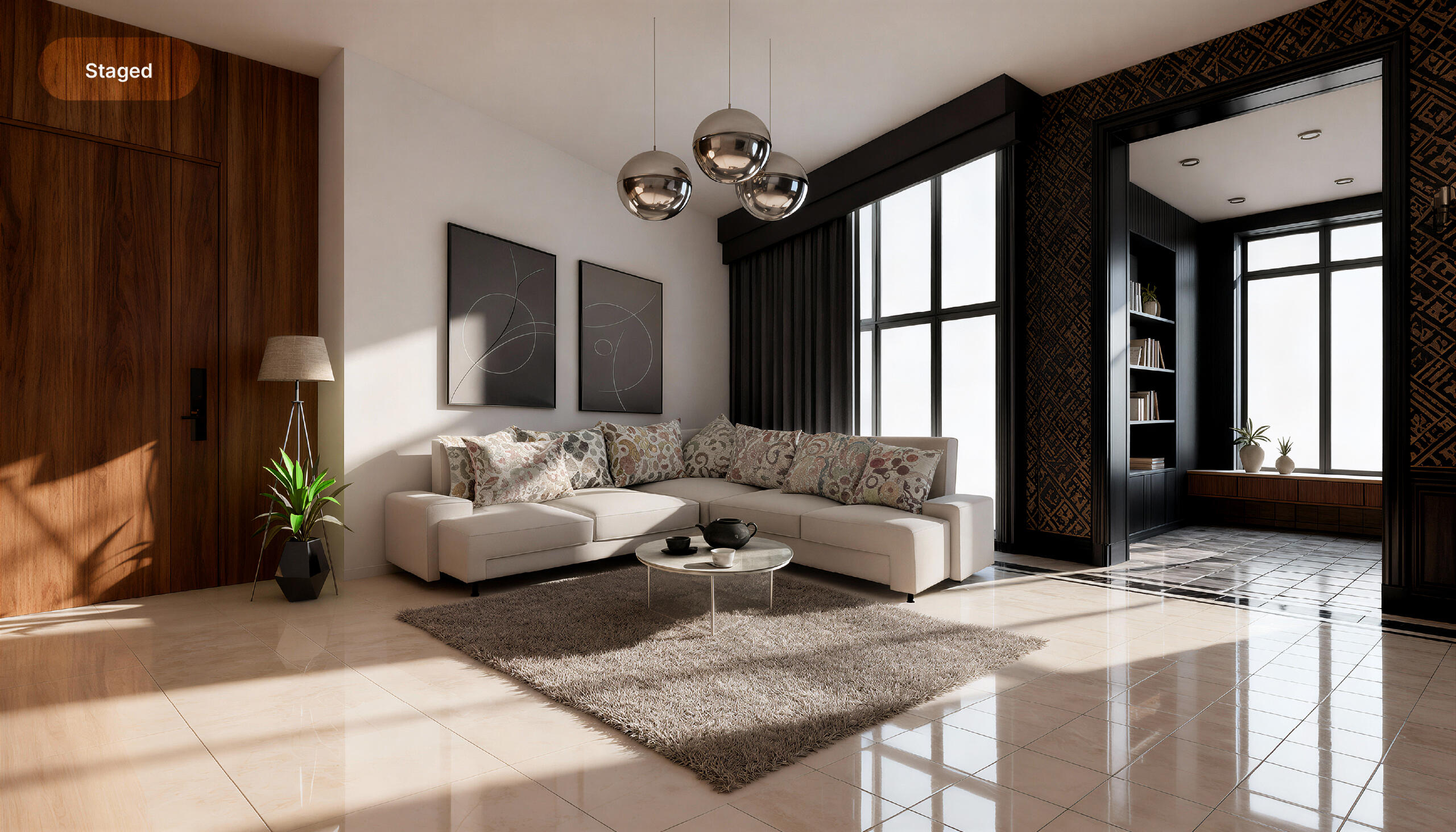 Empty properties feel cold and sterile online. Buyers struggle to visualize the potential, leading to fewer clicks, less interest, and lower offers. You know there's a better way, but cheap virtual staging often looks fake, harms your professional reputation, and can mislead buyers.