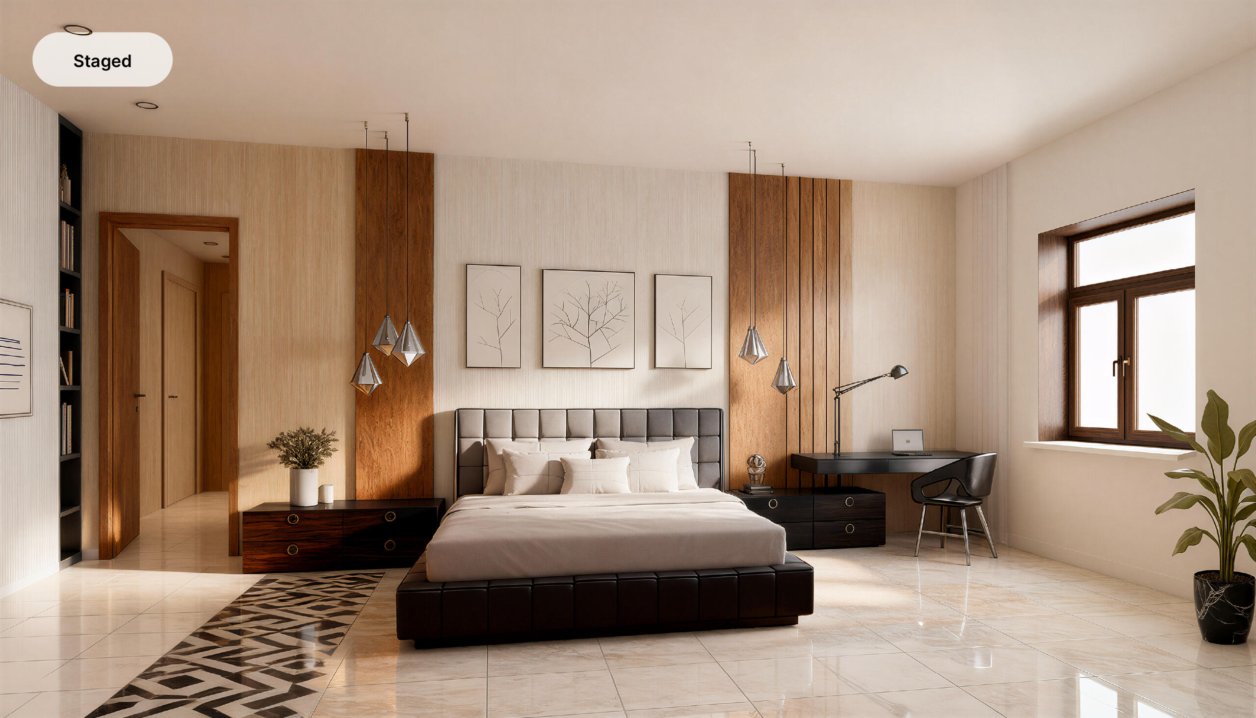High-Impact Virtual Staging: For up to 3 key photos of your choice (typically Living Room, Master Bedroom, and Kitchen).