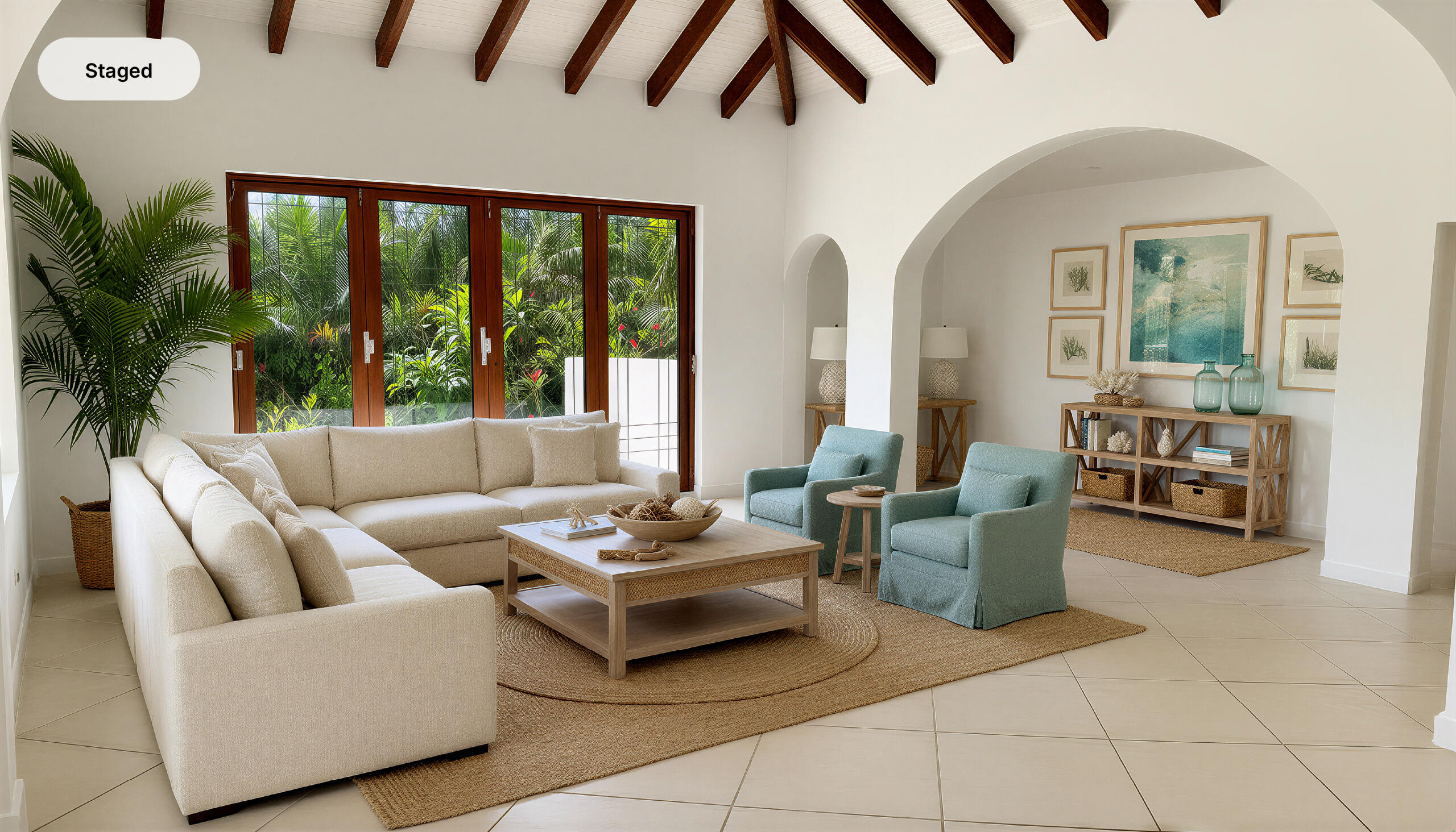 Curated Style Libraries: Choose from our two signature styles: "Tropical Modern" or "Caribbean Contemporary" to perfectly match your target buyer.